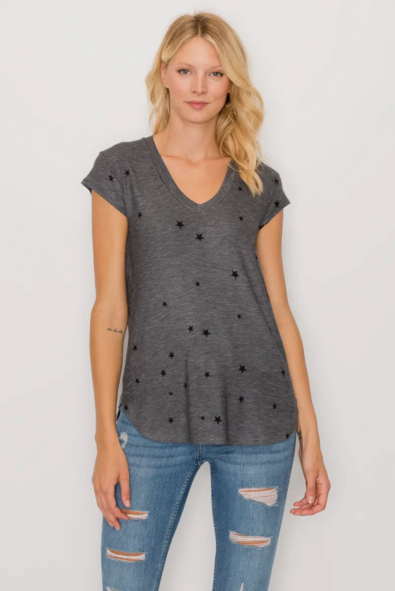 Star print, , short sleeve, v-neck Made in the USA